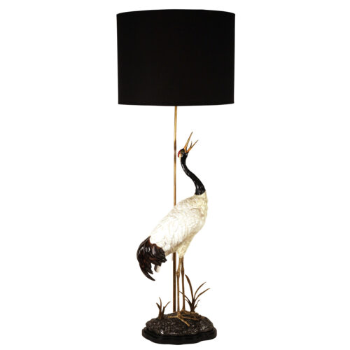 Otroligt exklusiv lampfot tillverkad i bronz och porslin. I form av naturtrogen dansande trana. Detta är bland det exklusivaste som finns, detta är en unik handgjord lampfot av absolut högsta kvalitet. Komplettera med valfri skärm. Men den måste vara stor för detta är en riktigt stor lampfot.