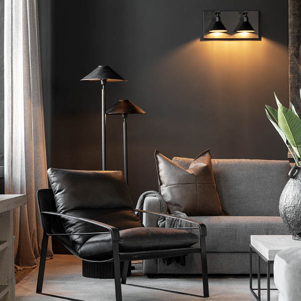 En golvlampa som både ger bra ljus och attityd till ditt hem, samt en hemtrevlig känsla. Tillverkad i antik svart, med skärmar i bronze. 2 st lamphållare E-27. Levereras komplett med skärmar.