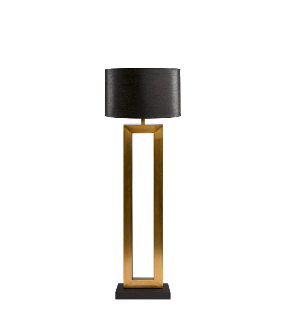 En stilren golvlampa med tillhörande skärm, lättplacerad i din inredning. Foten är tillverkad i mässing, oxiderad och borstad. Lampskärmen är svart och har en diameter på 60cm. Lamphållare E-27 max.500 lumen. En riktigt fin sak i ditt hem. Pris inkl. skärm.