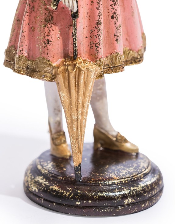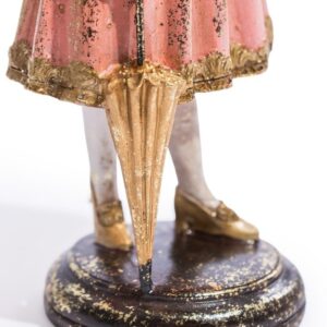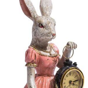Fru kanin har en söt rosa klänning i vintage stil och ett paraply i handen.