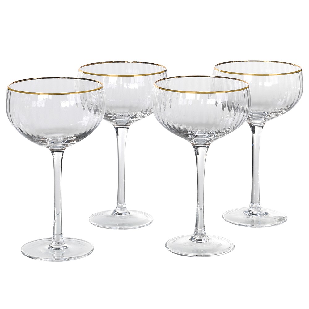 Klassiskt tunna och fina champagnekupor med ribbad dekor. Handgjorda glas med gulddekor . Levereras i 4-pack. Komplettera gärna med våra fina cocktailglas i samma serie.