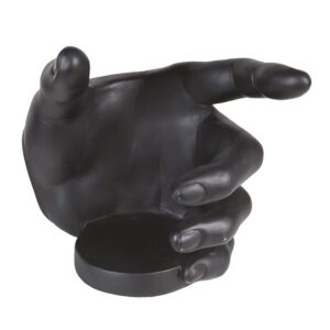 En rolig flashållare för vinflaskan i form av en omfamnande hand. Ange vilken färg du önskar i din beställning, svart eller vit. Tillverkad av konstmassa i ett marmorliknande utförande