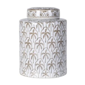 En stor vacker urna med tranor i en härlig koralfärg. Passar fint på ett konsolbord eller byrå. Den är gjord av porslin och står stadigt.