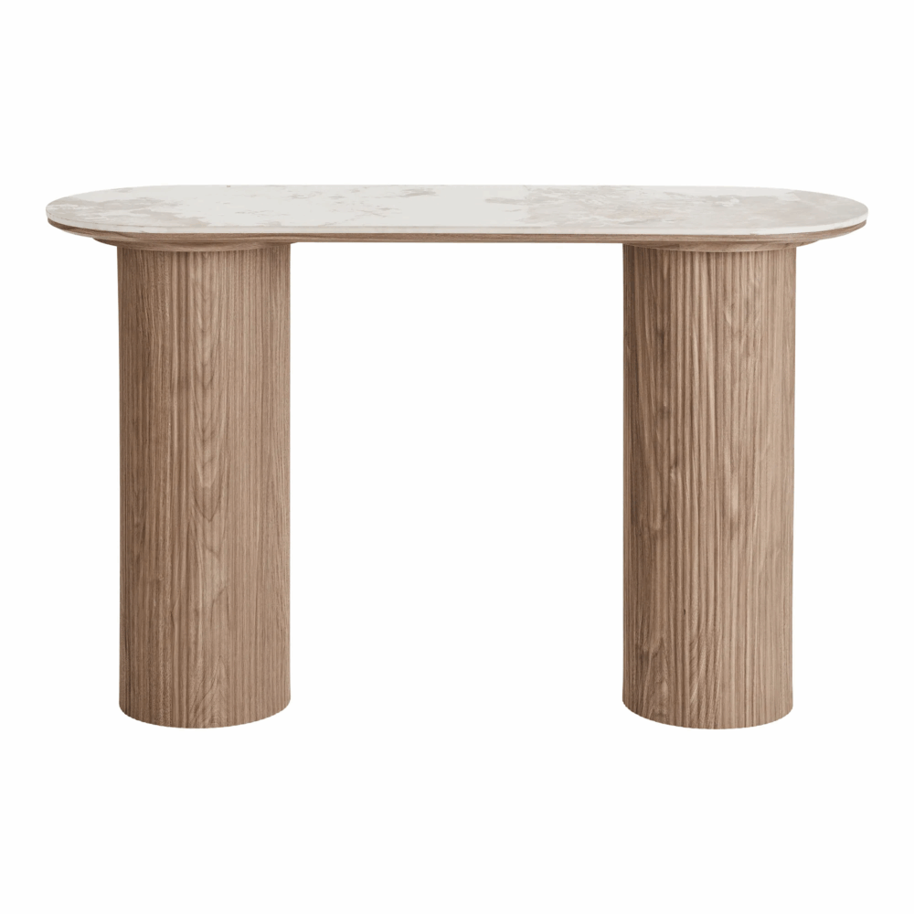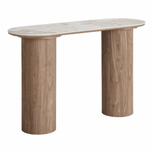 Ett konsolbord i senaste snitt, konstmarmor och trä i en fin kombination. Passar utmärkt i en hall eller i en matsal, kanske med en spegel över och en trevlig lampa på.