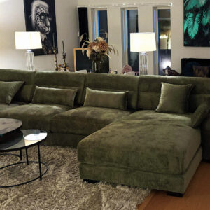En helt oemotståndlig soffa, som gjord för att mysa i. Med sin generösa storlek inbjuder den till just detta. Den kan bli till det du vill, tack vare dess fem olika byggdelar. Vill du ha en normal tresits soffa, eller en gigantisk soffa med divaner går det också bra. Det finns också en större pall (113 cm x 88 cm) som enkelt kan sättas till vilket skapar en flexibel divansoffa.