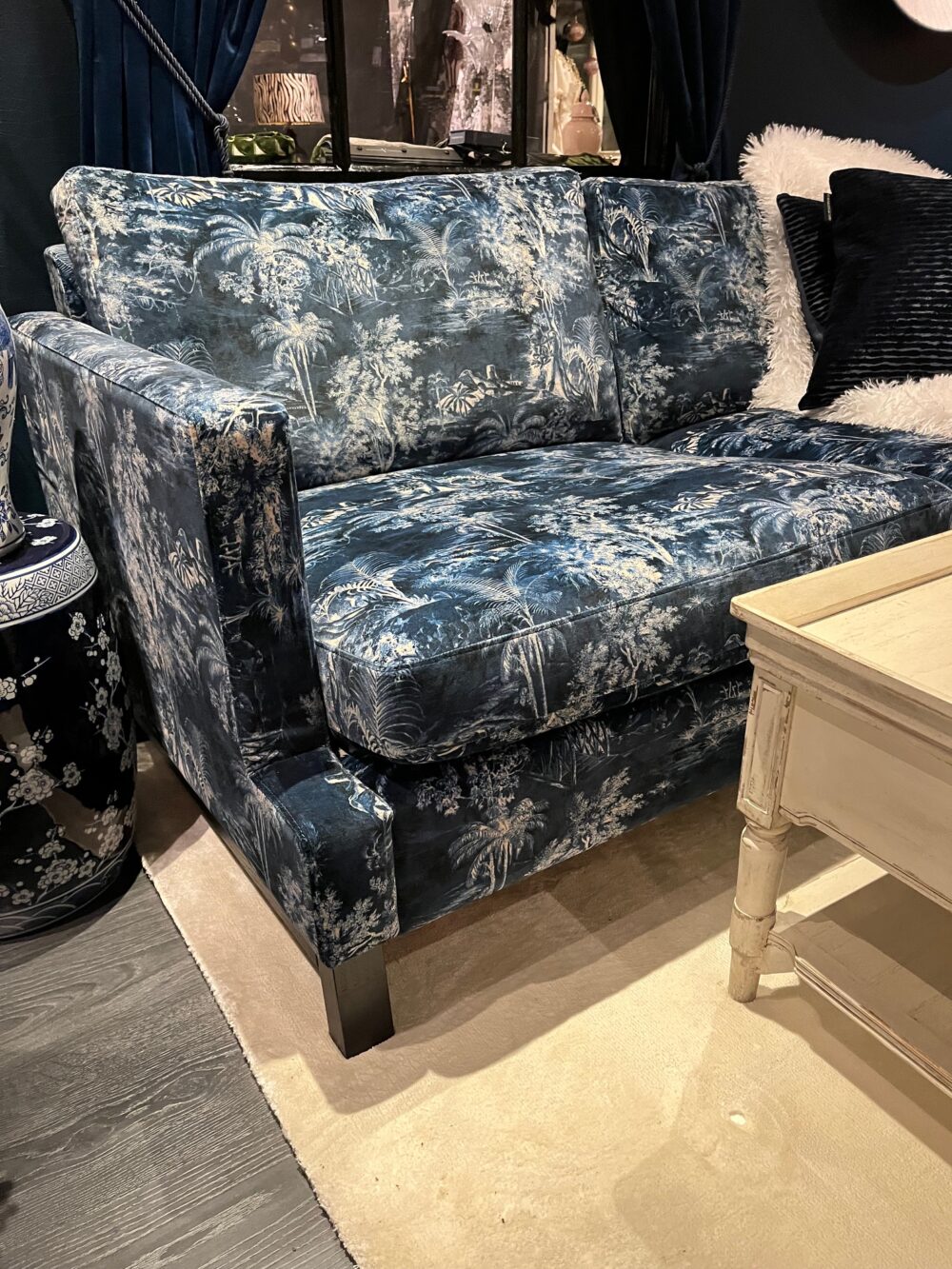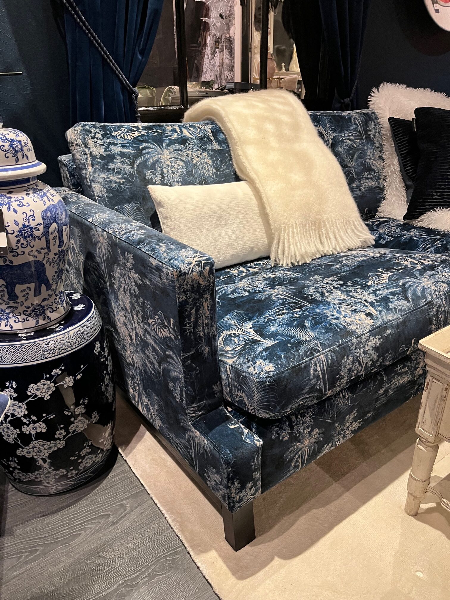 Handbyggd av Bröderna Anderssons och klädd med ett mönstrat italienskt sammetstyg. Finns enbart i ett exemplar. Har stått i vår utställning.