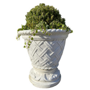 Exklusiv vacker urna med ett klassiskt motiv. Flätat mönster med bandrep överst. Tillverkad av vår exklusiva förstaklass gjutmarmor carrara, här i handpatinering ”Paris”. Välj mellan fem olika handpatineringar, som sedan förseglas för lång bekymmersfri livslängd. En verklig klassiker sak som pryder sin plats. Helt underhållsfri till skillnad från gjutjärn, denna blir bara vackrare med åren. Sockeln på bilden ingår. Höjdmått nedan är inkl. sockeln som ingår. Vill du få upp den högre, köp till annan sockel.