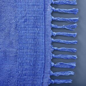 En härlig matta i en underbar blå färg. Tillverkad i 100% viscose. Storleken är 160×230, den storleken passar mycket bra att ha vid en soffa.