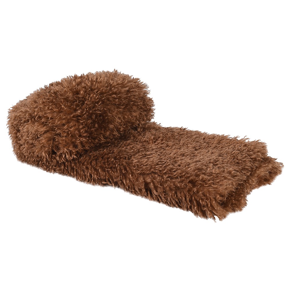En jättemjuk pläd tillverkad i Akryl/Polyester i en kolabrun färg. Den ser ut som en ryamatta men den känns inte som en ryamatta. Den är så mjuk, nästan som silke.